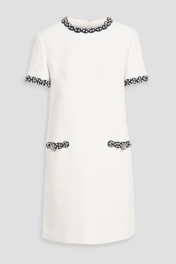 Floral-appliquéd wool and silk-blend crepe mini dress