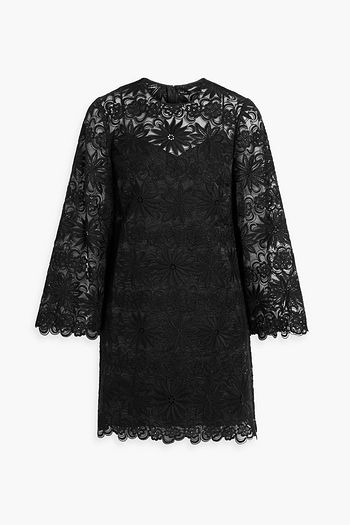 Floral-appliquéd embroidered tulle mini dress