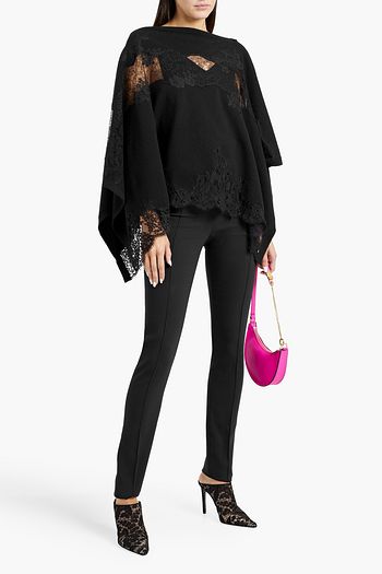 Cotton-blend lace-paneled wool and cashmere-blend poncho