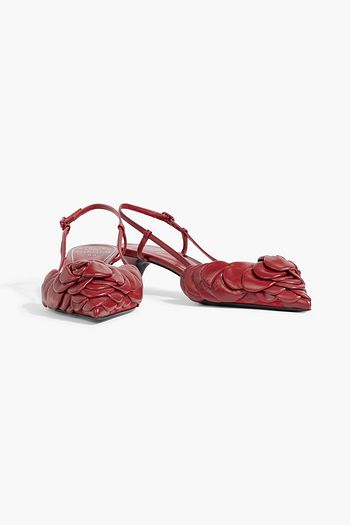 Appliquéd leather slingback pumps