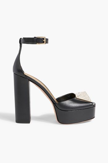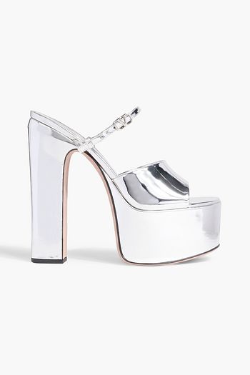 Embellished metallic leather slingback sandals