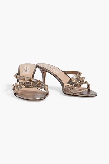 Rockstud metallic leather mules