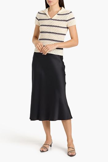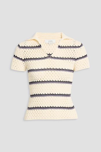 Striped open-knit cotton polo sweater