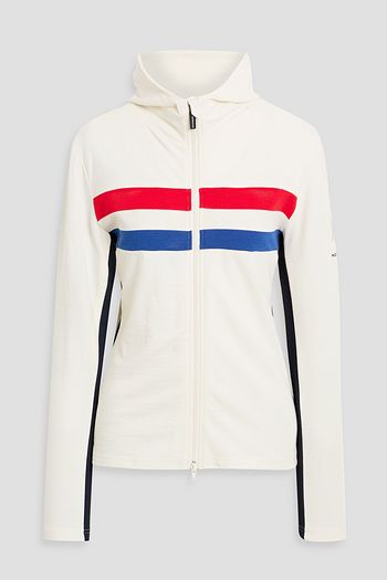 Striped wool-blend piqué hooded zip-up base layer
