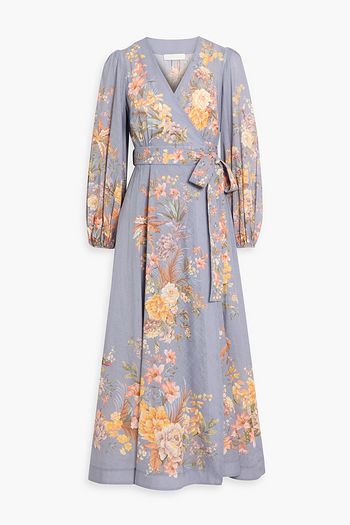 Belted floral-print linen and silk-blend gauze midi shirt dress