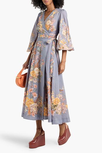 Ruffled floral-print linen and silk-blend gauze midi dress