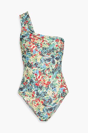 One-shoulder lamé and mesh swimsuit