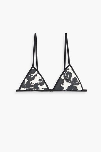Crochet-trimmed floral-print triangle bikini top