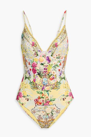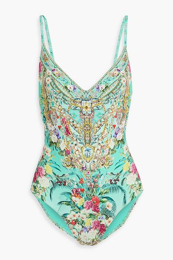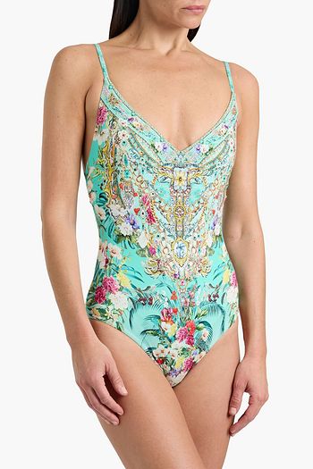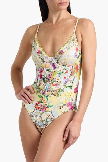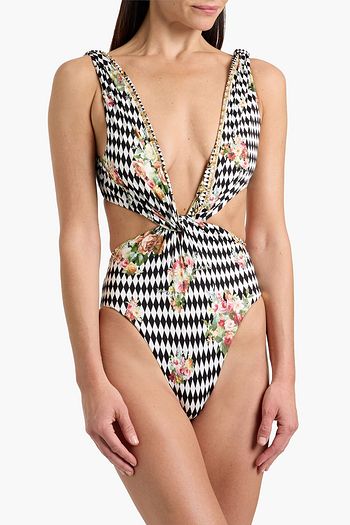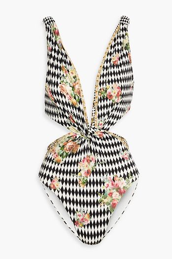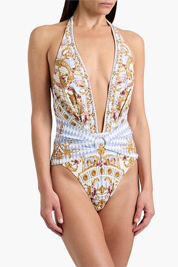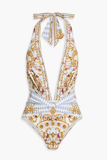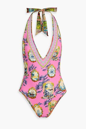 Mott floral-print stretch-seersucker halterneck swimsuit