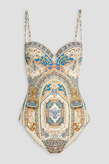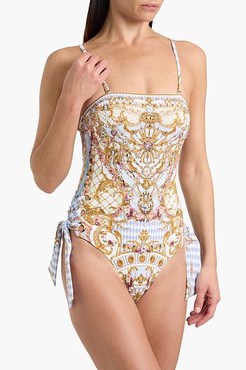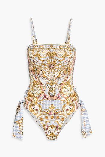 Antibes floral-print stretch-seersucker bandeau bikini top