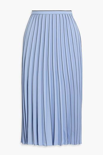 Floral-print plissé-organza midi skirt