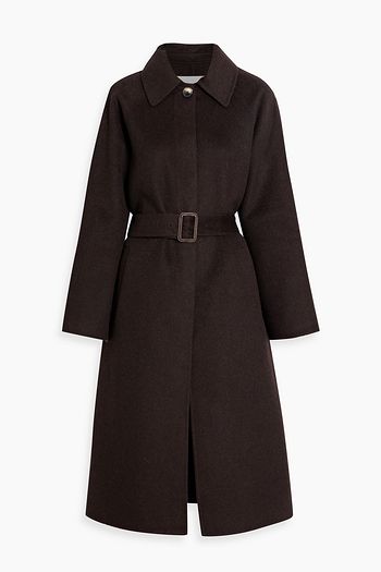 Belted brushed wool-blend felt coat
