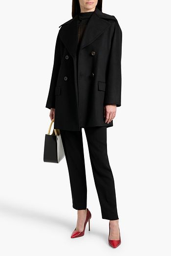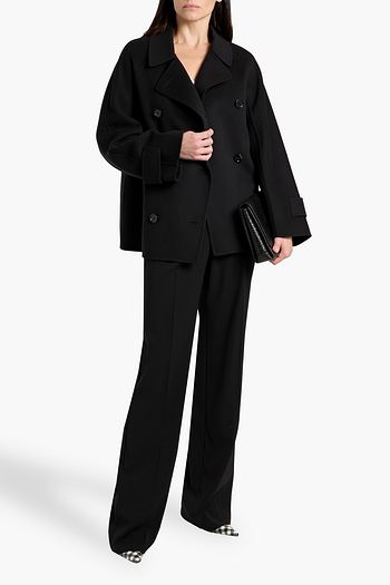 Double-breasted Prince of Wales checked alpaca-blend coat