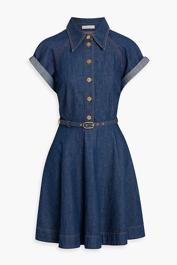 Belted denim mini shirt dress
