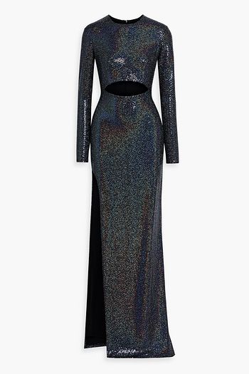 Asymmetric lace-trimmed floral-print linen and silk-blend maxi dress
