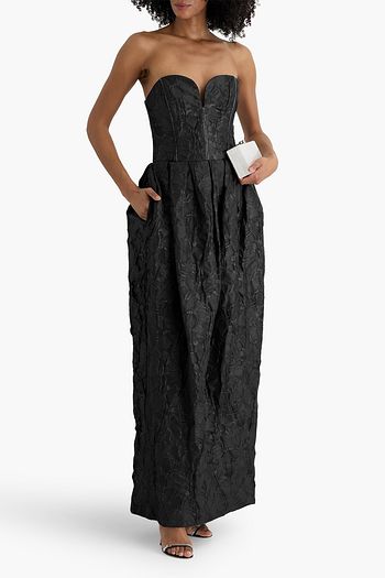 Crystal-embellished printed silk-satin and metallic fil coupé maxi dress