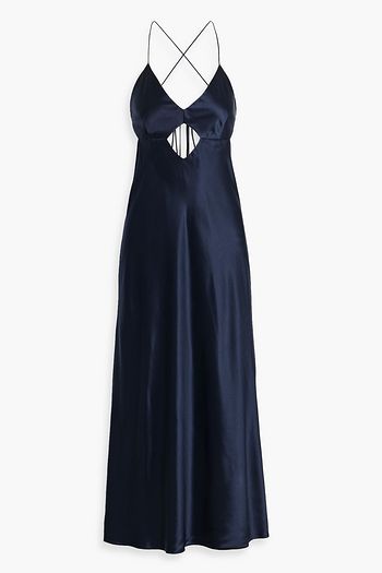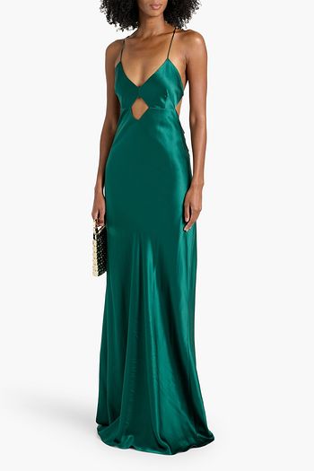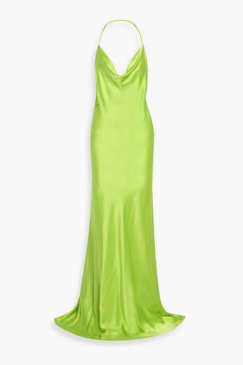 Gabriella asymmetric silk-blend satin halterneck midi dress