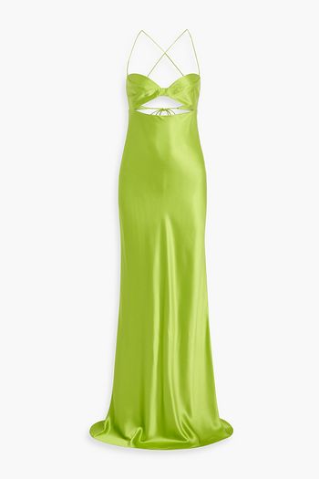 Strapless bow-detailed tiger-print silk-faille midi dress