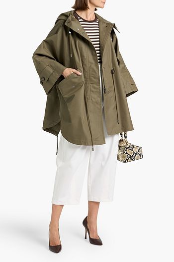 Cotton-blend gabardine hooded cape