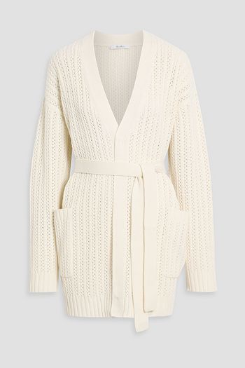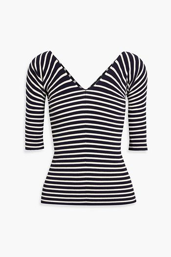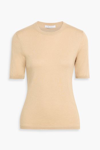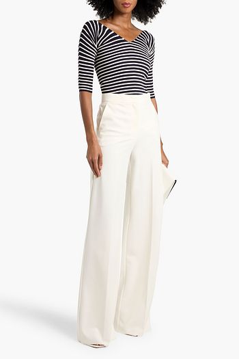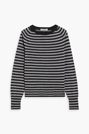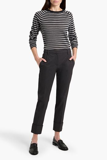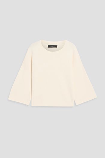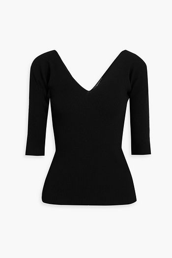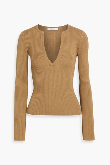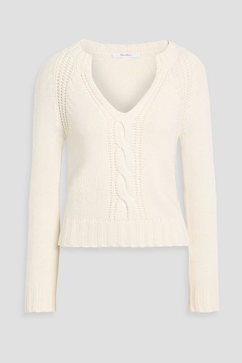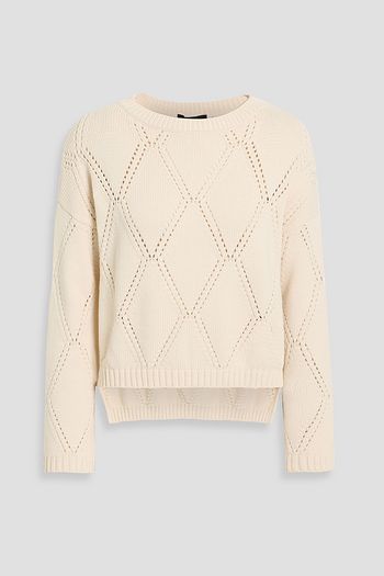 Lace-paneled ribbed wool and cashmere-blend sweater