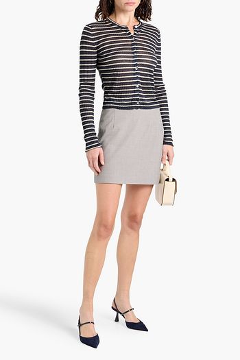 Sequin-embellished striped ribbed-knit wrap cardigan