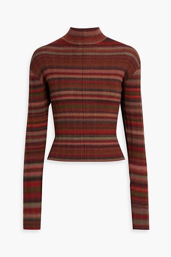 Sequin-embellished striped ribbed-knit wrap cardigan