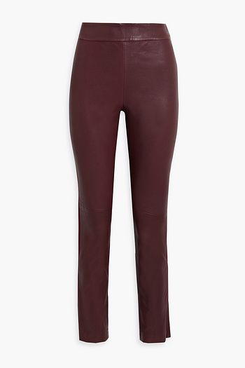 Faux patent leather-trimmed cotton-blend tweed mini skirt