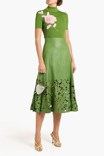 Laser-cut leather midi skirt