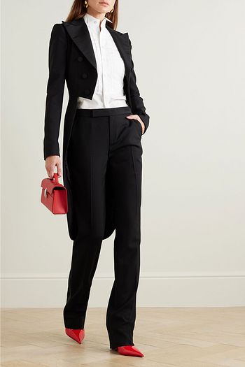 Alaina twill-trimmed grain de poudre wool straight-leg pants