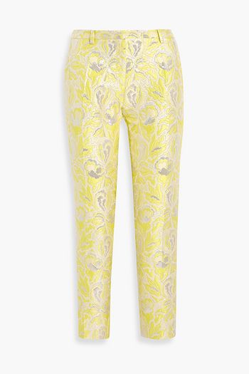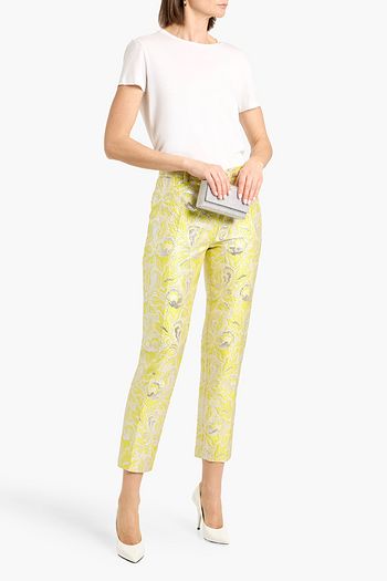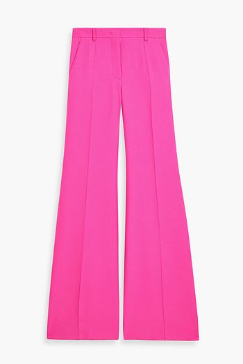 Crystal-embellished printed silk crepe de chine wide-leg pants
