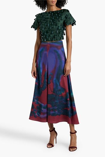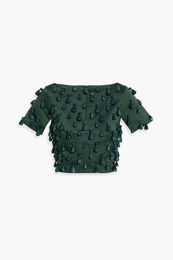 Jardena bow-embellished ruched taffeta and sequined crepe top