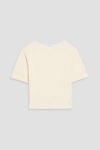 Cold-shoulder cropped ruffled broderie anglaise cotton top