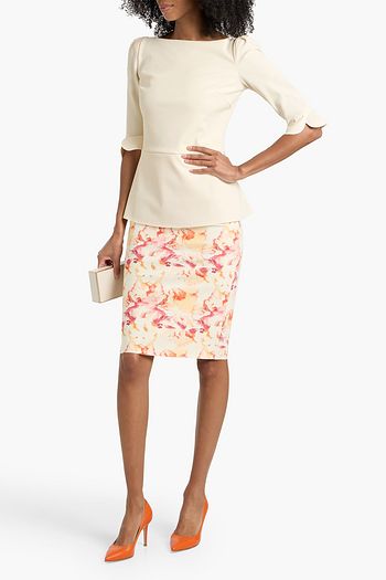 Shoin wrap-effect printed stretch-jersey peplum top