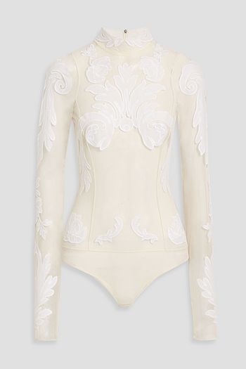 Off-the-shoulder cropped flocked tulle top