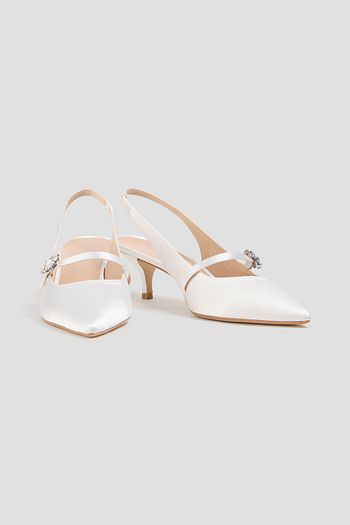 Aura 50 crystal-embellished satin slingback Mary Jane pumps
