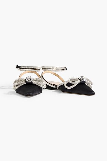 Crystal-embellished satin point-toe flats