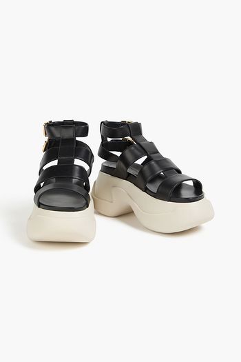 Whipstitched leather and canvas platform espadrilles
