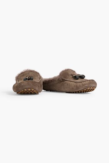 Nastroshark embroidered grosgrain-trimmed canvas and leather sneakers