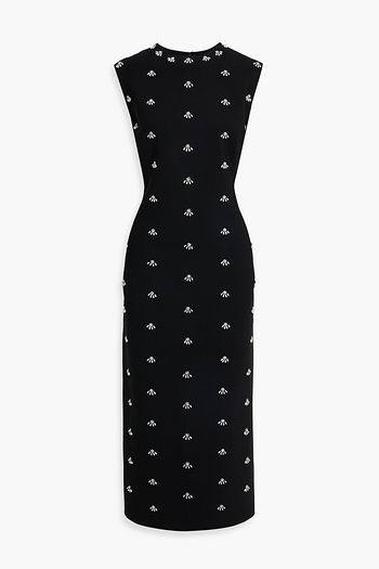 Embellished cutout stretch-cady midi dress