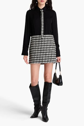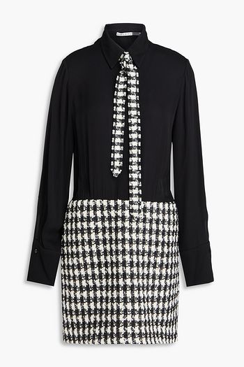 Mattie metallic houndstooth tweed and twill mini shirt dress