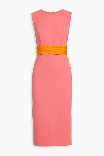 Violeta chiffon-trimmed ruched fil coupé recycled-faille midi dress