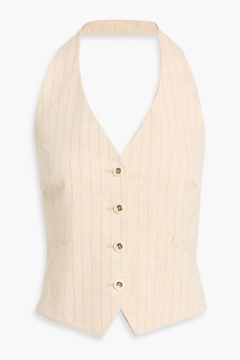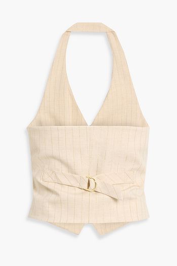Arabella metallic pinstriped cotton-blend halterneck vest