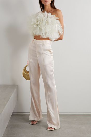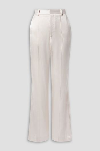 Guipure lace-paneled grain de poudre wool wide-leg pants