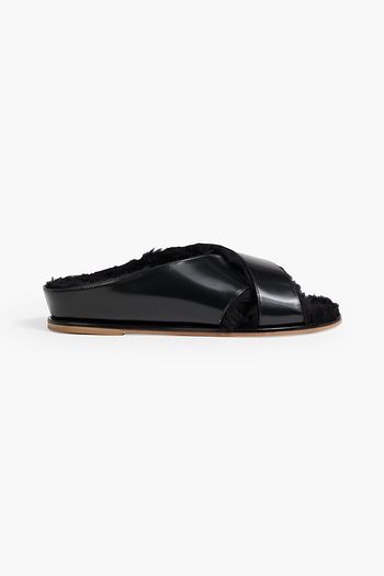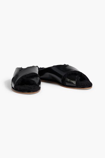 Ellington plush-lined glossed-leather slides