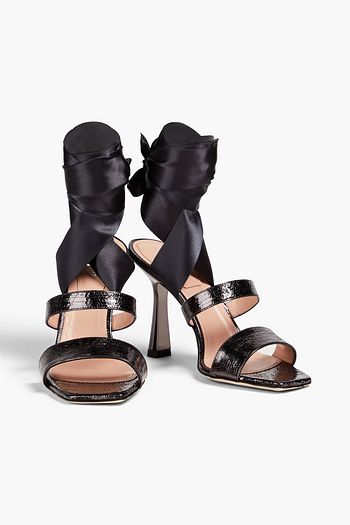 Metallic lizard-effect leather and satin sandals