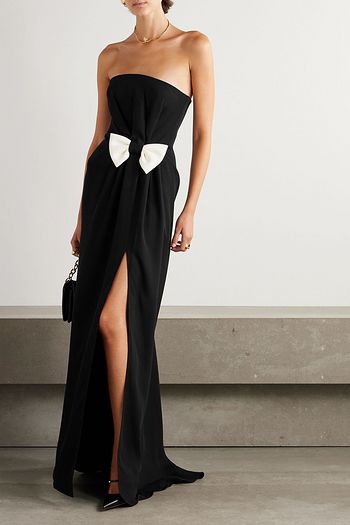 Strapless logo-appliquéd shell dress