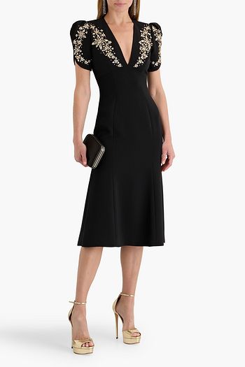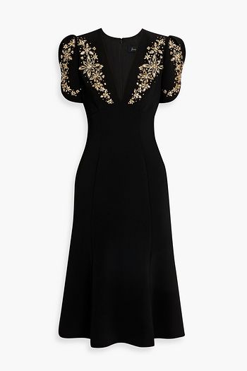 Embellished point d'esprit-paneled crepe de chine midi dress