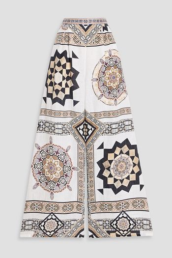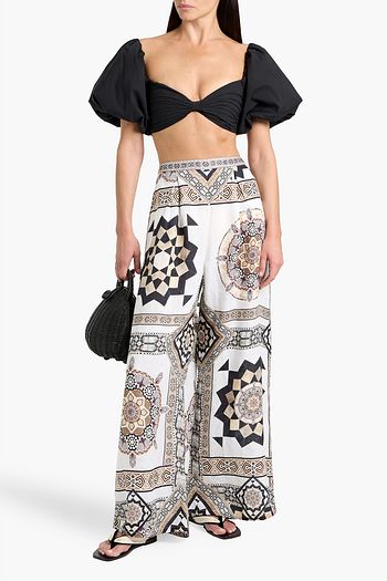 Printed linen wide-leg pants