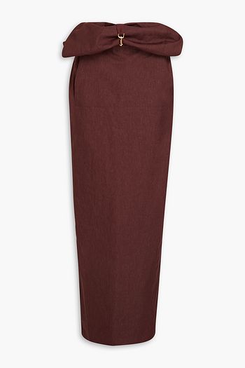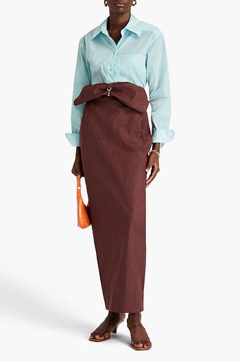 Embellished linen and cotton-blend canvas maxi pencil skirt