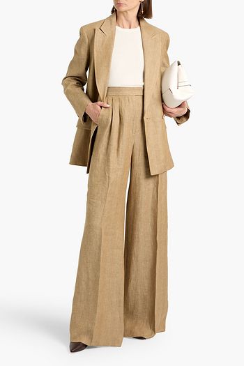 Leonie oversized two-tone silk, linen and wool-blend blazer